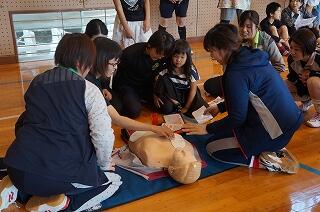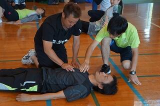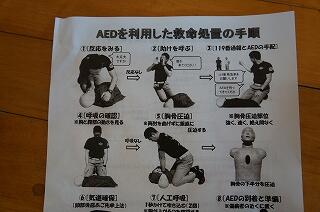 続けて、模型を使っての胸骨圧迫、AEDの使い方などを学びました。