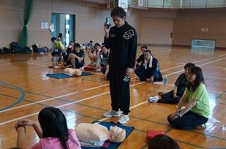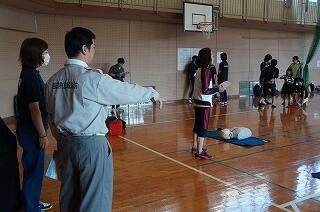 25日(土)に教育振興会主催による心肺蘇生法講習会を本校の体育館で行いました。毎年、この時期に実施しておりますが、1年ぶりであり、頭では理解していても、実際にやってみると少し戸惑いもあって、再確認するには絶好の機会となりました。