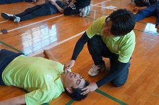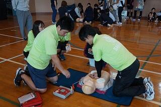 講師の方の説明がとても丁寧で、ペアを組ませて、胸骨圧迫の際の場所確認や気道確保の仕方などをしっかりと教えてくださいました。