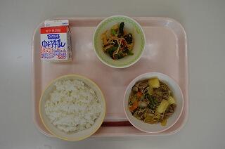 今日は、じゃがいものお話です。じゃがいもは、フランス語でポンムドメール(大地のりんご)といいます。これは、じゃがいもにビタミンCやカリウムがたくさんふくまれているので、野菜の少ない冬に、野菜や果物のかわりになる食品だったとことからついた名前です。今日は肉じゃがに、じゃがいもが入っています。よく味わっていただきましょう。