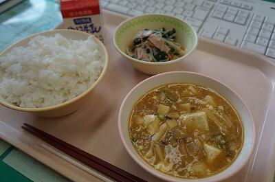 今日もお気に入りメニューですね~(*^▽^*)豆腐が大好きなので、麻婆豆腐が出るとテンションが上がります。個人的には辛めが好きですが、そこは給食ですから子どもたちに合わせていきますよね。でも充分美味しかったです。