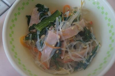 中華サラダも春雨に、ほうれん草、人参、ハム等の具材が絡み合って、最高のハーモニー(*^▽^*)うまい!