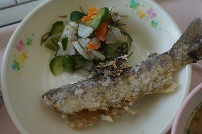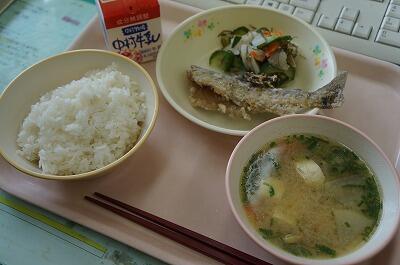 今日は、ひむか地産地消の日です。今日のメニューは、めちゃくちゃすごいと思います。やまめのから揚げは、最高でした。揚げたてで、サクサク衣(*^▽^*)上からしっぽの先まで完食しました。もう、美味すぎです。