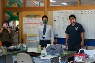 人に配ったそうですが、本校の先生方にも配付してくれましたので、みんなで付けて写真撮影をしました(*^▽^*)