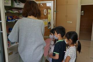 学校探検をしていました。2つのグループに分かれ、職員室や保健室、校長室を訪ねていました。それぞれ