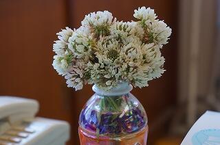 5年生の女子2名が、その花をペットボトルにいっぱい詰めて、校長室に持ってきてくれました。机の上