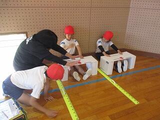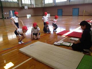 火曜日に引き続いて、今回は体育館で「立ち幅跳び」と「長座体前屈」、運動場で「50M走」と「ソフトボール投げ」をしました。今回も一つ一つの種目に精一杯挑戦した子どもたちでした。
