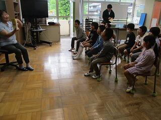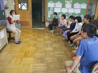 本年度もおよそ月に1回、読み聞かせの会「つくしんぼ」の皆様に来ていただきます。第1回目から、子どもたちは真剣なまなざしで絵本を見つめ、物語の世界に引き込まれていました。