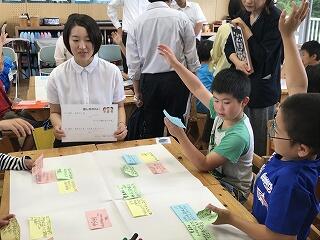 工場や田畑、お店など、意見を出し合いながら、似たものをまとめ、いくつかのカテゴリーに分類しまし