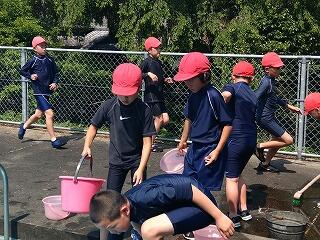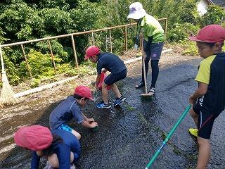 前回、きれいに掃除されたプールの様子をお目にかけましたが、子どもたちが頑張っている写真が手に入