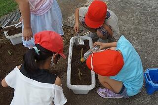 早速植えました。わたがどうやってできるのか、どのように付くのかなど、子どもたちの興味も高まります。