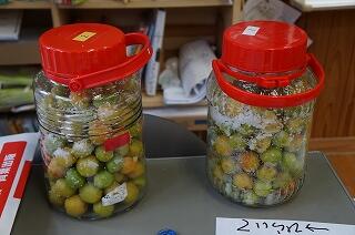 は、G授業で作っている梅干しに「しそ入れ」をする活動でした。保護者の皆様が見守る中、2人の梅博士