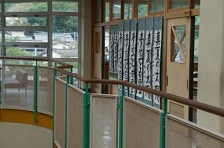 子どもたちが書いた書道の作品が2階の廊下に貼り出されました。毎週水曜日に、いきいき教室の長田美
