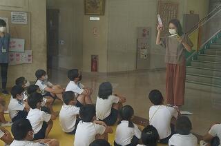 子どもたちの大好きな時間(*^▽^*)つくしんぼの会の皆様による読み聞かせがありました。 低・中・高 の