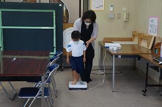 2学期の身体計測を行いました。縦割りでグループを作って、全校一斉に行いました。身長測定や体重測