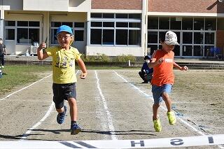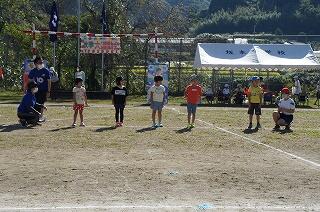 来年の新入生は、5名です。運動会では、「私もいつかは1年生」という種目の中で50メートルを激走