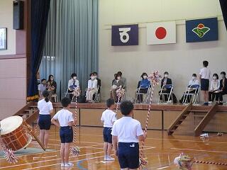 ルで、隊形変化も多く、1年生から3年生までの子どもたちがやるには、意外に難しいのでは?と感じたほ