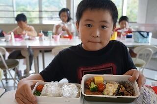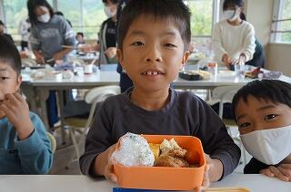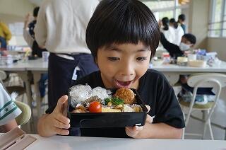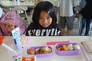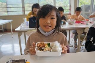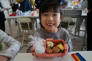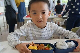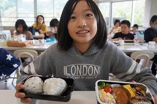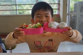 はい!弁当の日の様子を紹介しますね~。第1回目は、低学年です。うれしそうな笑顔やもう待ちきれないよ~って姿やお弁当の詰め具合を見てくださいね~