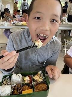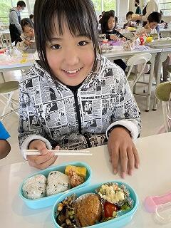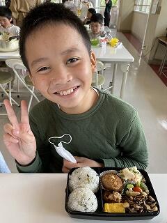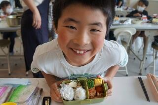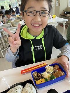 日に、自分たちで箱詰めした、個人個人のカラーが出ている弁当と笑顔の紹介です。第2弾は、中学年です。おいしく見えますか~~?