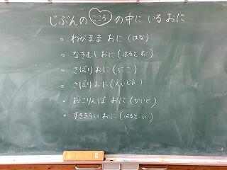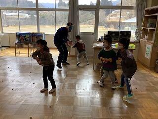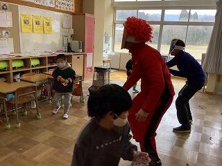 2月3日は、節分でした。本校の1・2年生が豆をまいて、心の鬼退治を行いました。いろいろな鬼がい