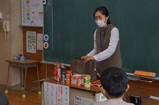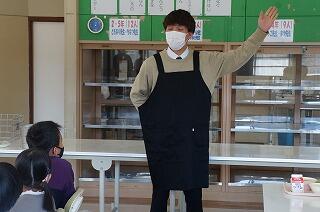 す。本校の給食を調理していただいている技術員の裕樹さんや食材を提供していただいている方々に、それ