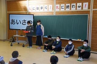 言を行いました。1つ目があいさつや返事のこと。2つ目が発表のこと。3つ目が自分から行動することで
