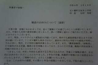 五ヶ瀬町内におけるコロナウイルス感染関係の諸事情や影響を鑑み、本校は、明日(18日)を臨時休業