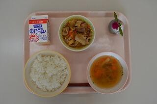 かぼちゃのような、色の濃い野菜を、何野菜といいますか?6年生以上は、家庭科で学んでいると思います。正解は、緑黄色野菜です。今日のような、緑黄色野菜の成分は、のどや鼻の粘膜を強くし、菌の侵入を防ぐ働きがあります。風邪が流行り始める季節です。残さずいただきたいですね。