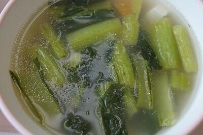 かぼちゃのみそ汁は、みそ汁の色が黄色くなるほどかぼちゃの甘味がよく出ていて、こちらもとてもおいしかったです。やはり、ごはんにはみそ汁が合いますね(*^▽^*)
