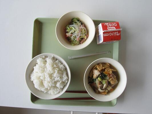 今日は中華風のメニューでした。厚揚げにかかった熱々のあんかけと、冷たい春雨サラダのバランスがとてもよかったです。いろいろな野菜がたくさん入っているのも、体にやさしく元気の出るメニューで嬉しいです!ご飯にもよく合う一品でした。