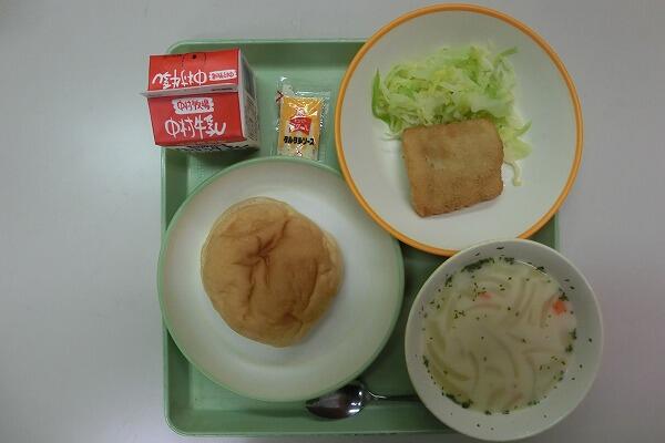 今日はパンの日。そしてパンはパンでも、人気メニューの1つ、フィッシュバーガーでした。中に挟むカリッと揚がったフライフィッシュと、シャキシャキの千切りキャベツ、タルタルソースが絶妙にマッチしてとてもおいしかったです。温かいコーンスープと一緒に、あっという間に食べ終わりました。