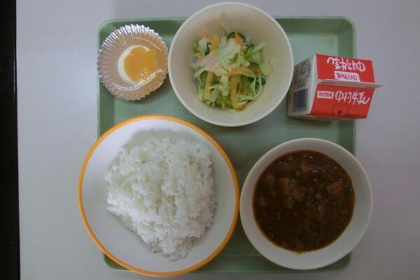 今日は、子どもたちに大人気のメニュー、カレーライスでした。日本では年間1人当たり、約80食カレーを食べているそうです。1週間に1~2回は必ずカレーを食べている計算になります。それほどカレーライスは、日本の食に浸透しているんですね~。もちろん、子どもたちも残さずペロリとたいらげました。