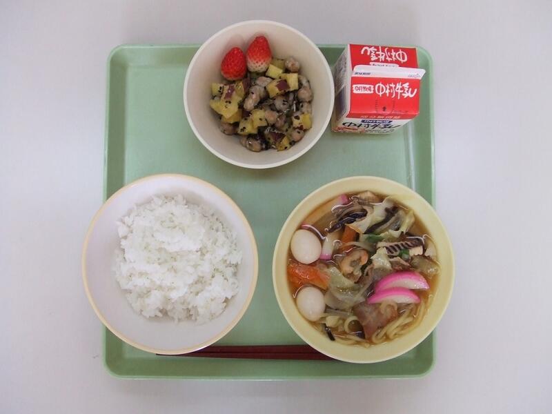 ちゃんぽんは子どもたちの大すきなメニューの1つです。いろいろな食材も入っていて栄養たっぷりですね。また給食に出る日が楽しみです。