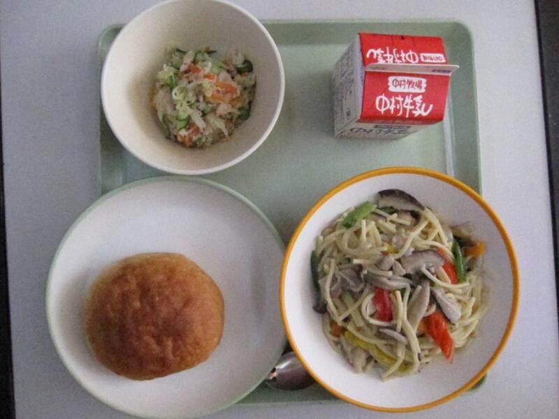 秋は野菜や米、果物などいろいろな食べ物がおいしい季節ですね。今日の給食にもおいしいきのこがたくさん使われていました。スパゲッティーにもよく合っていて、子どもたちもあっという間に完食していました!
