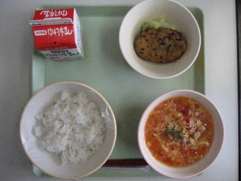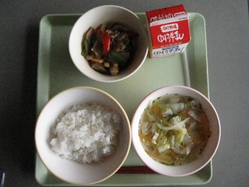 今日の給食は、キムチ汁でした。ほんの少し辛めの汁でしたが、