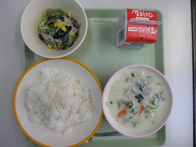今日の給食は、キムチ汁でした。ほんの少し辛めの汁でしたが、
