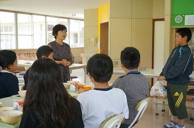 最近は、昼頃になると少し暑く感じる日が多くなってきました。冷たい牛乳が子どもたちにはとても嬉しいようです。今日は午後から内科検診があるため、給食の開始時刻も少し早めになりました。バスで町病院まで移動もありましたので、1年生も時間内にしっかりと食べ終えていました。