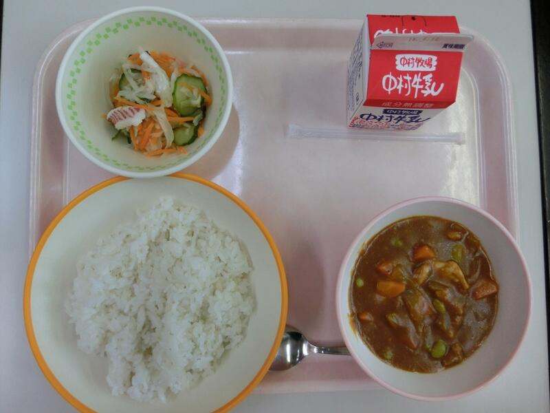 今日は子どもたちが大好きなカレーでした。坂本小の給食のカレー、美味しいんですよ。