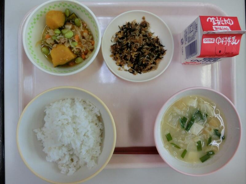 献立のそぼろ煮に入っているかぼちゃは、カロテンを多く含んでおり、栄養満点の野菜の一つです。今日のように、そぼろ煮にしたり、サラダやコロッケなどのメニューにも合う万能野菜ですね♪