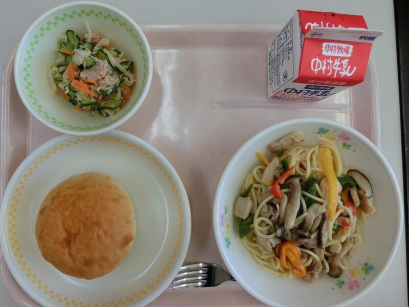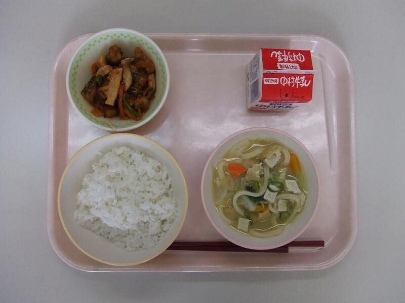 今日の給食で使われている椎茸は、昔は天然のものしかなく大変貴重なものでした。ほだ木を使った栽培が始まったのが江戸時代、そしてより安定的な人工栽培法が確立した昭和17年です。今日の椎茸は干し椎茸が使われています。椎茸を天日干しすることで、ビタミンDが増え、カルシウムの吸収率が高まります。ピリッとした味を楽しみながら、貴重な食材である椎茸をもりもり食べていました。