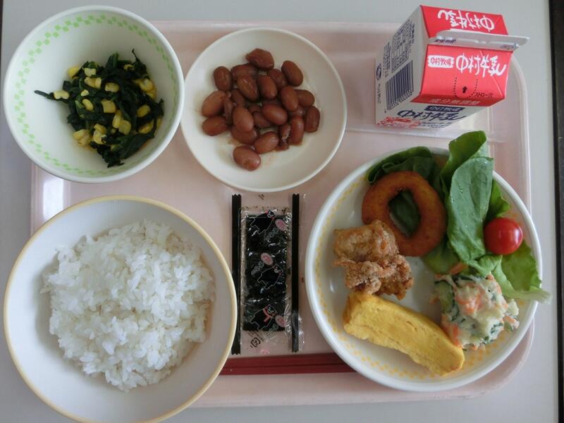 今日の献立には「ちりめんじゃこ」が使われています。このちりめんじゃこにはカルシウムがたくさん入っています。食事からこのカルシウムが摂取できないと、体内の骨からカルシウムを溶かす働きが起こるため、骨がスカスカになってしまいます。ケガにもつながりやすいですね。家でも、今日のような小魚やヨーグルト、海藻などを適量に摂り、カルシウムが不足しないような食事を心がけていきたいですね。
