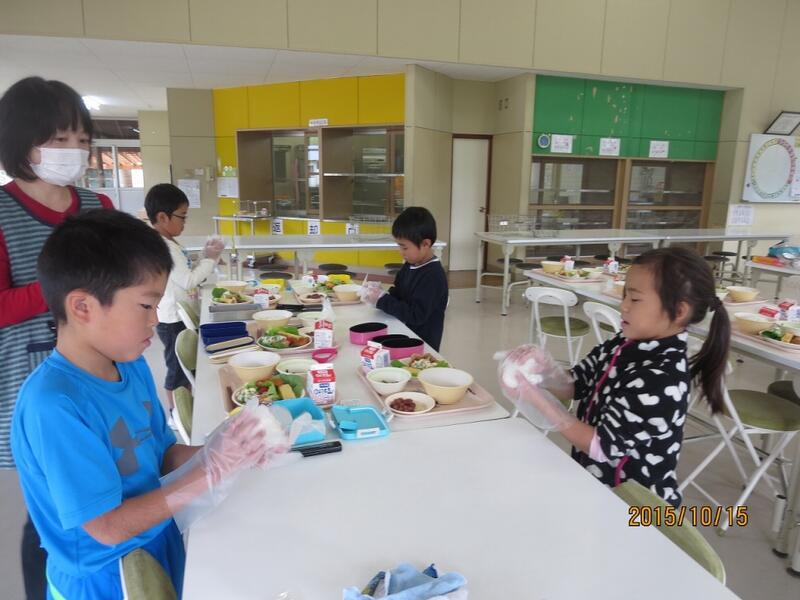 今日は、「弁当に詰める活動」の日でした。給食の献立も、弁当の内容にしていただき、子どもたちは持ってきた自分の弁当に詰めたり、ご飯をおにぎりにしたりと楽しそうに取り組んでいました。