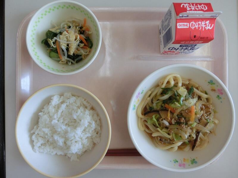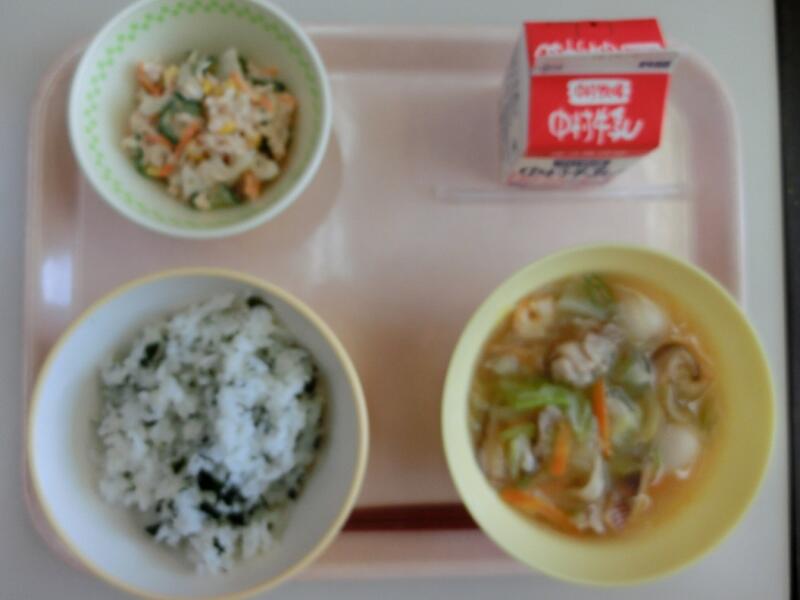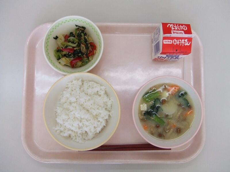 今日の献立には「ちりめんじゃこ」が使われています。このちりめんじゃこにはカルシウムがたくさん入っています。食事からこのカルシウムが摂取できないと、体内の骨からカルシウムを溶かす働きが起こるため、骨がスカスカになってしまいます。ケガにもつながりやすいですね。家でも、今日のような小魚やヨーグルト、海藻などを適量に摂り、カルシウムが不足しないような食事を心がけていきたいですね。