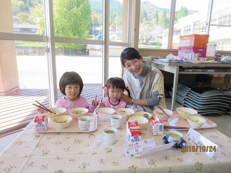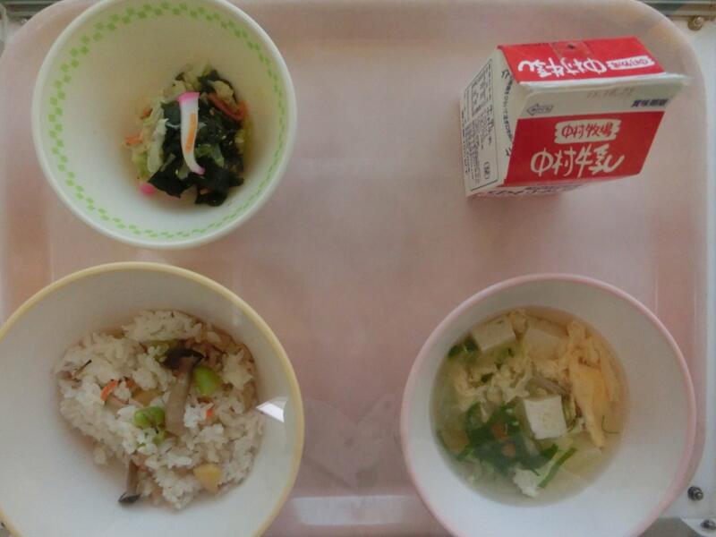 今日は五ヶ瀬町オープンスクールでした。坂本小学校のわくわくランチには10名のお客様が来られました。今日の献立には、きのこや栗など旬のものがたくさん使われています。この時期ならではのメニューです。こうした実りの秋に感謝しながら、お客様と一緒に給食をいただきました。