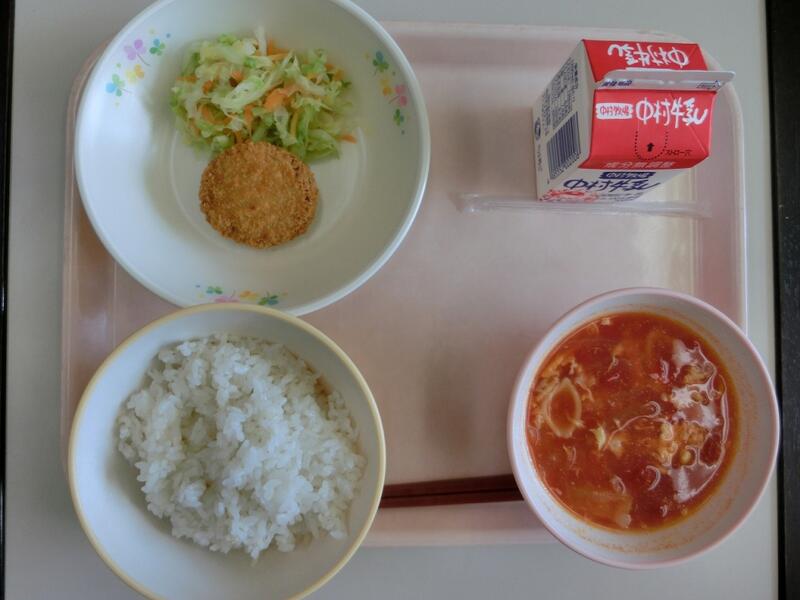 今日のイタリアンスープに入っている「トマト」は江戸時代に日本に伝わったそうですが、真っ赤な色が敬遠され、最初は見て楽しむだけの観賞用にされていたそうです。食べ物として利用されるようになったのは明治になってからです。トマトにはビタミンやうまみのもとであるグルタミン酸がたくさん含まれています。赤い紅葉のようなスープを美味しく頂きました。