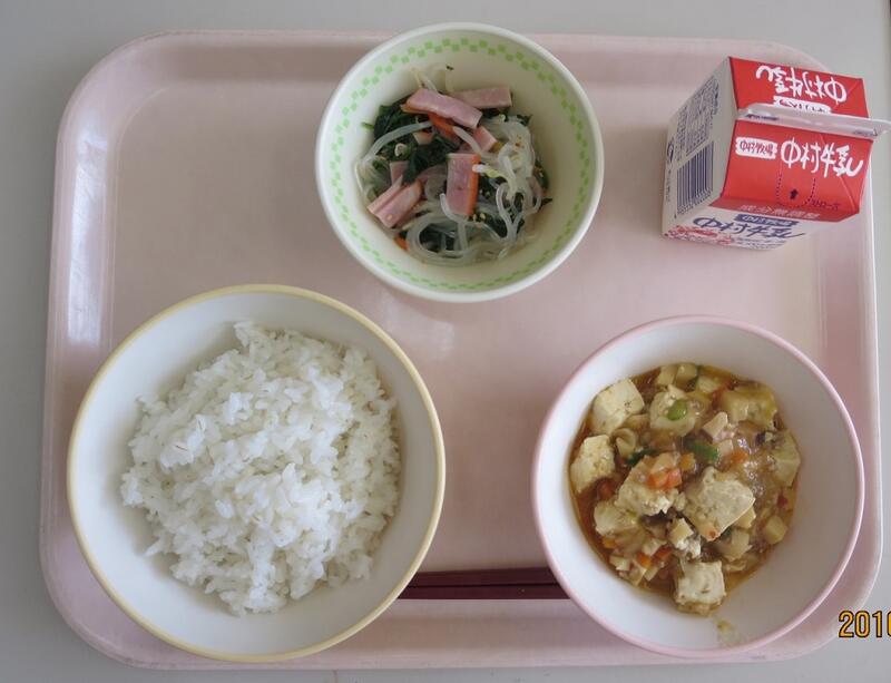 大豆は、畑の肉と言われるほど、体の筋肉や血をつくる栄養のもと(たんぱく質)を多く含んでいます。また、体を丈夫にしたり、おなかの働きを良くしたりする効果もあります。小さいけれど、豆のパワーは大きいです。豆腐は大豆から作られる代表的な食べ物です。今日は、豆腐が主役のマーボー豆腐を美味しくいただきました。