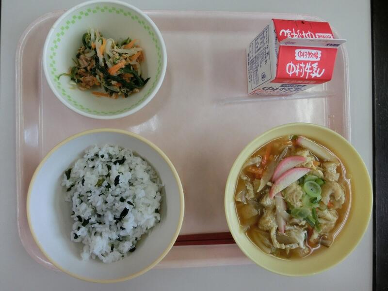 学校給食では、みそ汁や煮物などの出汁に煮干しを使っています。「だし」はおいしい料理を作る決め手となります。煮干しは「かたくちいわし」の小さいもので、「いりこ」とも呼ばれます。給食では、煮干しの他に、かつお節や昆布、椎茸も「だし」として使うことがあります。「だし」の香りを楽しみながら今日もおいしくいただきました。