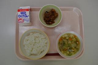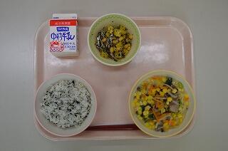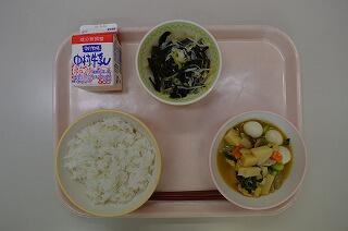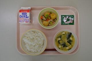 今日は、魚の献立ですが、みなさんは、魚は好きですか?魚はすごいパワーをもっています。頭の働きをよくしたり、血液の流れがよくなるようにしたり、骨を丈夫にしたりいろいろな働きがあります。魚をしっかり食べて、魚パワーで、午後からの勉強もがんばりましょう。