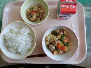 じゃがいものふるさとは、南アメリカのアンデス山地で、古代インカ帝国の人々が栽培したのが始まりといわれています。今から500年くらい前に、スペインの探検家がヨーロッパに持ち帰り、各地に広まりました。じゃがいもには、ビタミンCが多く含まれているので、冬に野菜がとれないところでは、野菜の代わりによく食べられていたそうです。今日は、うま煮にはいっています。たくさん食べて、午後も元気に過ごしましょう。