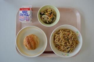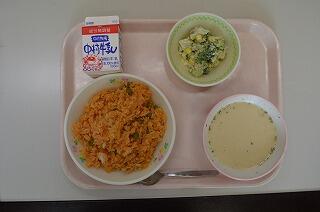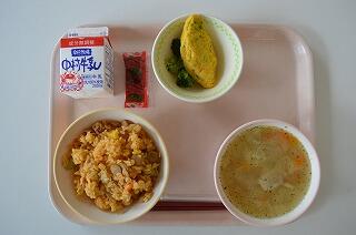 今日は、かきあげ丼です。野菜などを小さく切ったものを小麦粉の衣でまとめ、油で揚げたものです。かきあげは、天ぷらの種類です。食べやすいように、甘辛い味付けにしました。作るのにとても、手間ひまかかります。調理員さんのおかげで、今日も給食が食べられます。ありがたいですね。感謝していただきましょう。